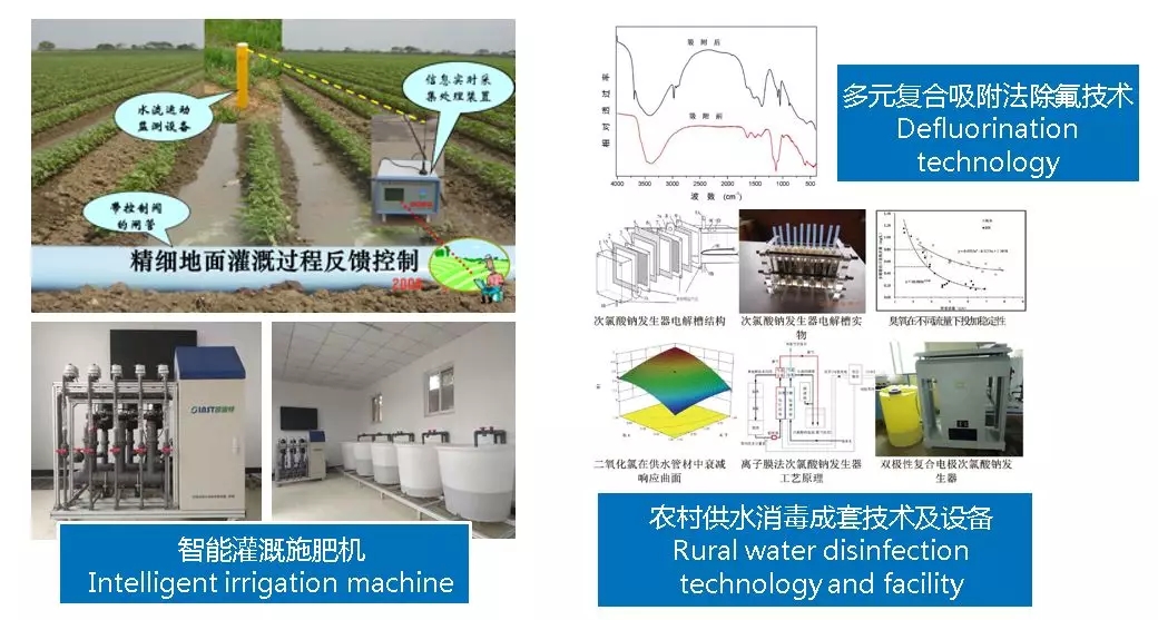 开发农村节水灌溉系列产品,农村水消毒、高氟水处理等技术与设备。这些实用技术都得到了较为广泛的应用。