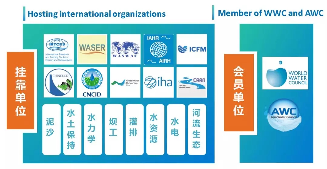 中国水科院是国际泥沙研究培训中心和9个大型国际学术组织或会议机制总部及中国委员会秘书处的挂靠单位。