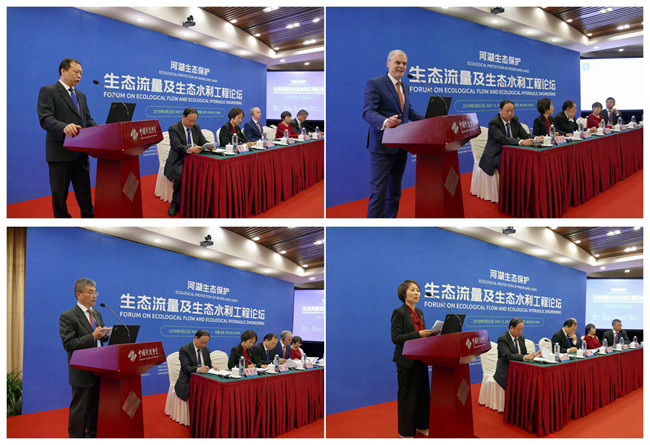 在开幕式上,刘六宴从中国河湖情况及发展历史出发,分析了河湖开发治理过程中存在的问题,结合水生态发展目标,介绍了河湖长制等相关实施措施,并呼吁要凝聚各界共识,共同促进河湖生态的保护。Peter Goodwin介绍了国际水利与环境工程学会(IAHR)在水生态保护领域的理念,以及IAHR在平台、智力、学术等方面的优势,希望IAHR和中国水利加强合作,为全球水治理做出贡献。刘咏峰指出,IAHR作为国际涉水领域最重要的学术团体,和我们共同举办河湖生态保护论坛,相互学习借鉴先进的理念和经验,有助于合作推进河湖生态保护事业的进步,也有助于更有效地应对全球水危机。彭静指出,水与生态的课题是中国的,也是世界的。从古代的“逐水而居,听天由命”,到近现代“征服自然,改造自然”,在进入“生态文明,和谐共生”的新时代后,需要我们面对如何重构“绿水青山”的生态价值观、如何科学实施“山水林田湖草”的系统治理等挑战。期待通过交流,能够分享对水与生态这一时代和世界课题的智慧思考和创新探索。