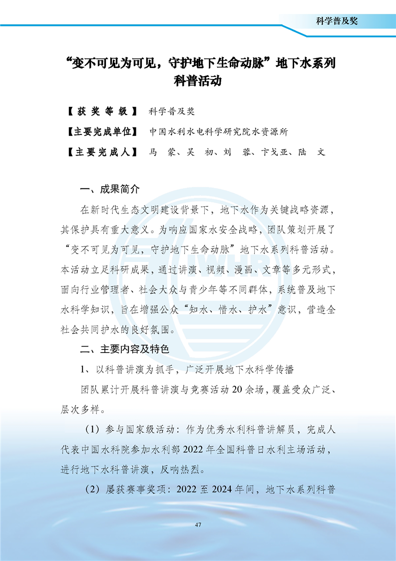“变不可见为可见,守护地下生命动脉”地下水系列科普活动
