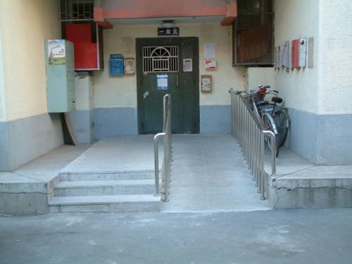 为便于残疾人、老年人、弱势群体出行,海淀区残联拨专款修建住宅楼坡道,在小区的领导下,居委会派专人,不分昼夜的积极配合施工队,在不影响正常出行的前提下,在较短时间内对北小区所有的楼道门出口处修建了坡道,深受老年人和残疾人的赞赏欢迎。他们一致道出感谢政府,感谢小区、居委会为社区居民办了一件利于出行的实事。